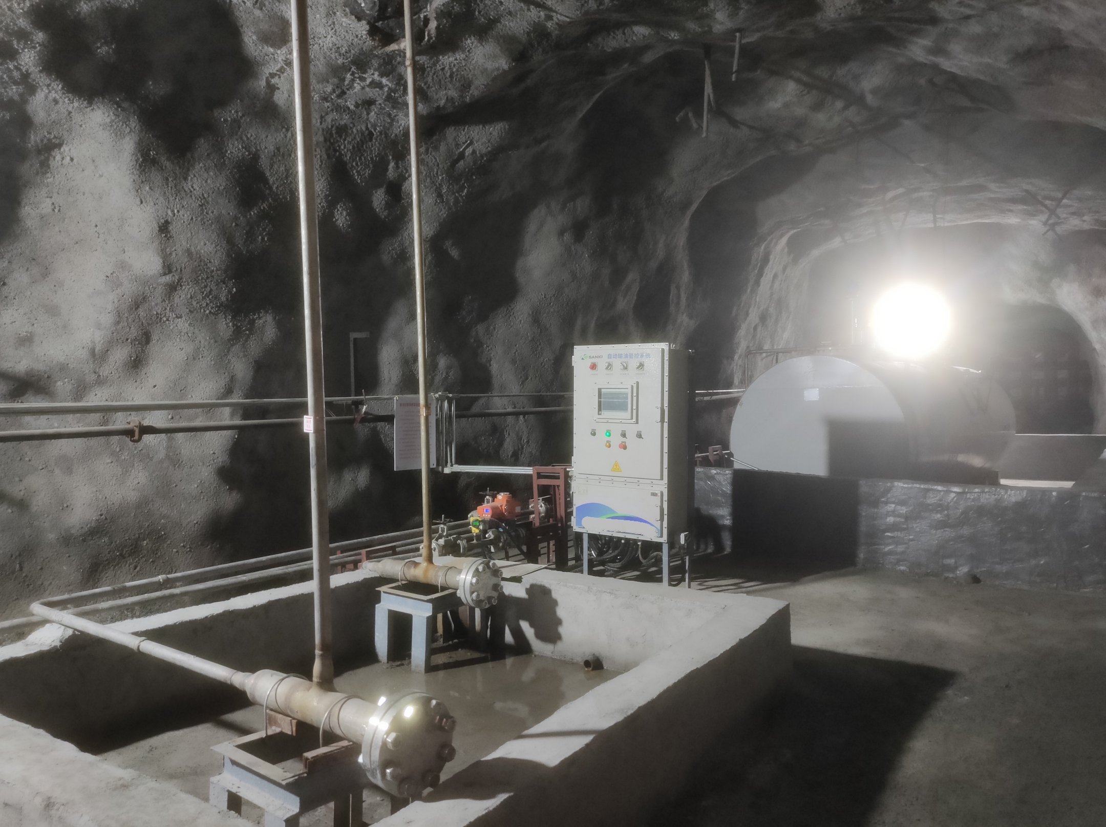 凡口鉛鋅礦井下680米智能供油系統 目前正有序施工中, 預計9月底完工并投入使用。該項目為全國首創, 由韶關企業進行技術攻堅 并申請多項國家專利, 擬申報吉尼斯世界紀錄 “全球最深的智能供油系統”。 凡口鉛鋅礦井下智能供油系統 需在地面設置橇裝加油裝置, 并分別在地下 330米、480米和680米處 建設智能化供油系統, 通過鉆孔鋪設輸油管線, 將油品從地面輸送到井下。 地下330米智能加油點, 目前已進入收尾階段, 現場有兩根 從地面裝置接下來的輸油管, 用于工程車加油, 另一邊也有兩根輸油管輸送到 地下480米和680米的智能加油點。 別看油管很細,鉆孔不大, 但施工難度并不小, 全長3千多米的輸油管, 垂直打孔偏差不能超過1米。 作為亞洲最大的 單體鉛鋅銀礦生產基地, 凡口鉛鋅礦 有井下工程車輛和設備100多臺, 井下用油量大。 井下智能化供油系統啟用后, 不僅解決井下用油安全、環保風險, 同時降低生產用油成本, 推進凡口鉛鋅礦建設智能化礦山, 實現“無人開采”。 如果鉆孔偏差太大,就找不到鉆下來的孔,影響輸油管道的布設,增大成本。3千多米有5千多個焊接點,所有的焊接口都要達到高壓管道的焊接要求,這個項目是全國首創,在全國所有礦山企業中,我們是首次使用通過輸油管道往井下輸油,并且實現智能控制的方案。 這個月底把地下330米加油點完工,開始加油,9月底把底下480米和680米開通使用。希望通過這個項目打造創新科技的韶關樣板,把先進的經驗和技術推廣到全省、全國乃至全球。